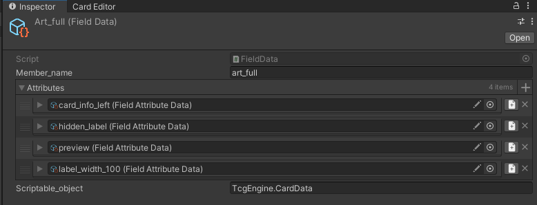 Set a list of attributes that should be added to a specific member in a specific scriptable object. There are a bunch of examples in the project that make the current look for Card Editor.